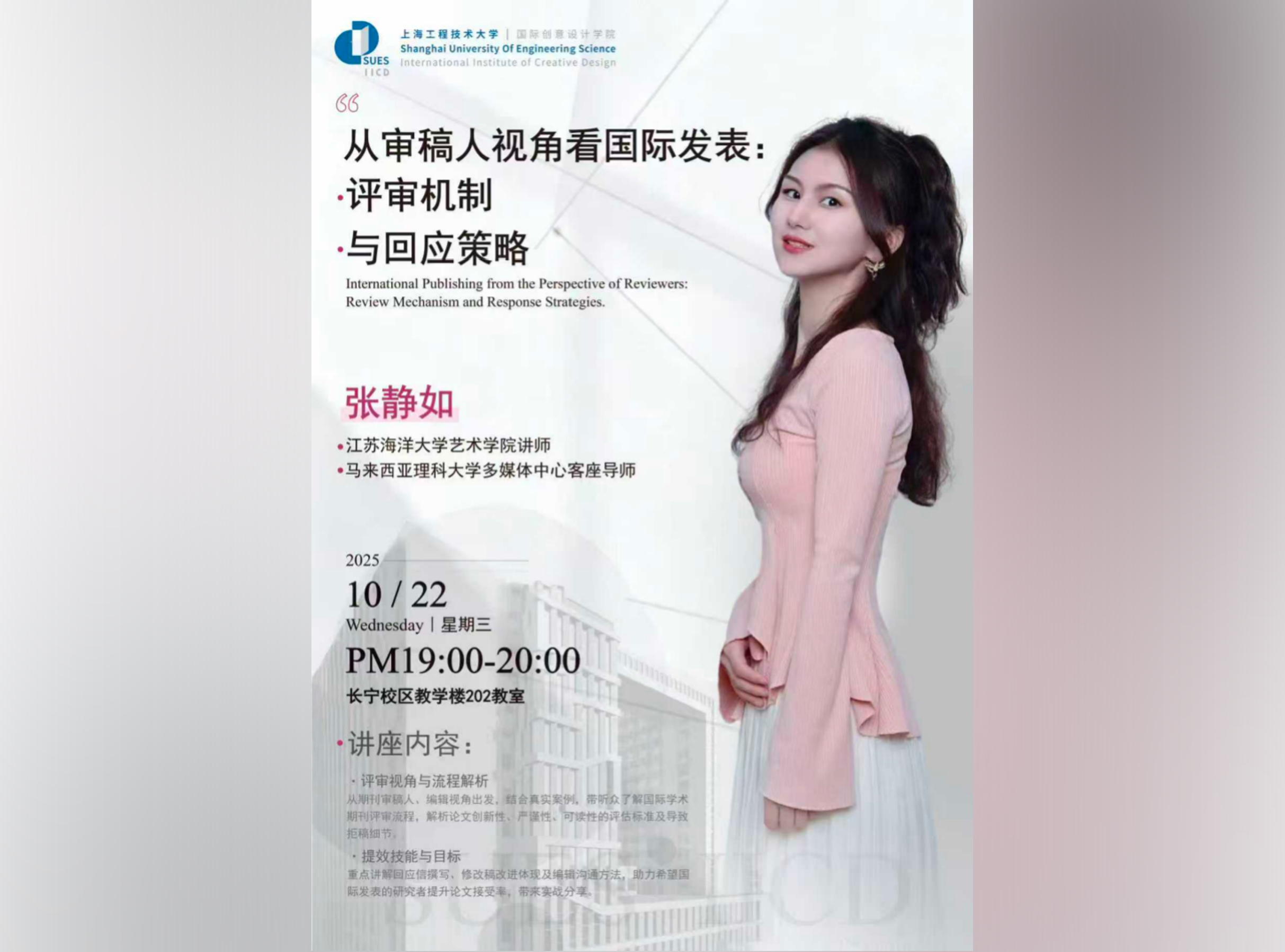 2025年10月22日,bw必威西汉姆联官网首页在教学楼202举办“从审稿人视角看国际发表:评审机制与回应策略”专题讲座。此次讲座特邀马来西亚理科大学多媒体中心客座导师、江苏海洋大学艺术学院讲师——张静如老师主讲。本次讲座面向2025级研究生新生,由赵悦扬老师主持,许雪花老师等共同参与。张老师从审稿人视角出发,系统分享了国际期刊评审机制。她指出,编辑初审重点关注期刊匹配度、格式规范、研究创新性及查重与AI占比。针对审稿周期...
