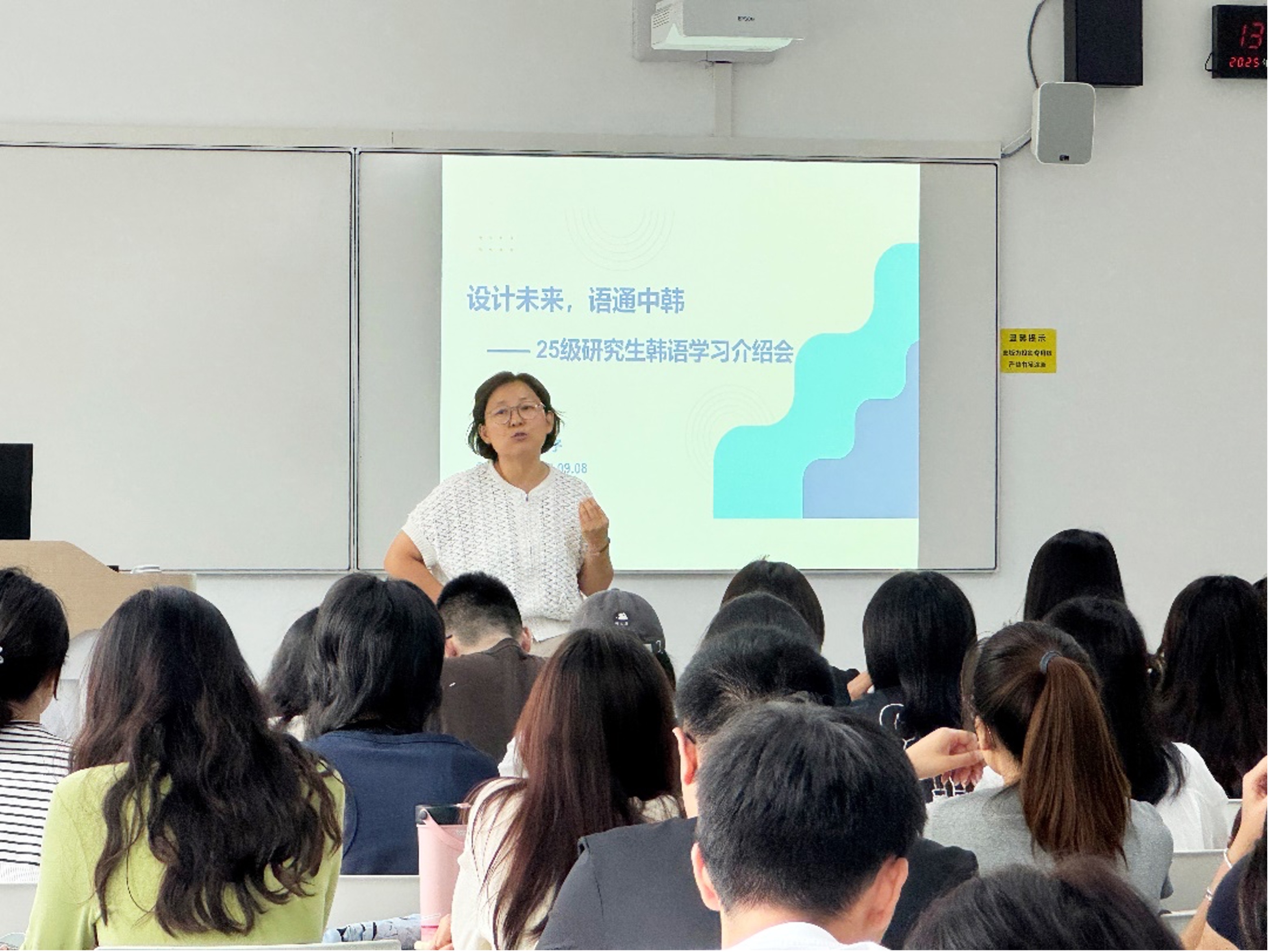 9月8日下午,bw必威西汉姆联官网首页在长宁校区教学楼202教室举办“设计未来、语通中韩”韩语专题讲座。讲座由李花子老师主讲, 2025级全体研究生参加,现场气氛热烈。