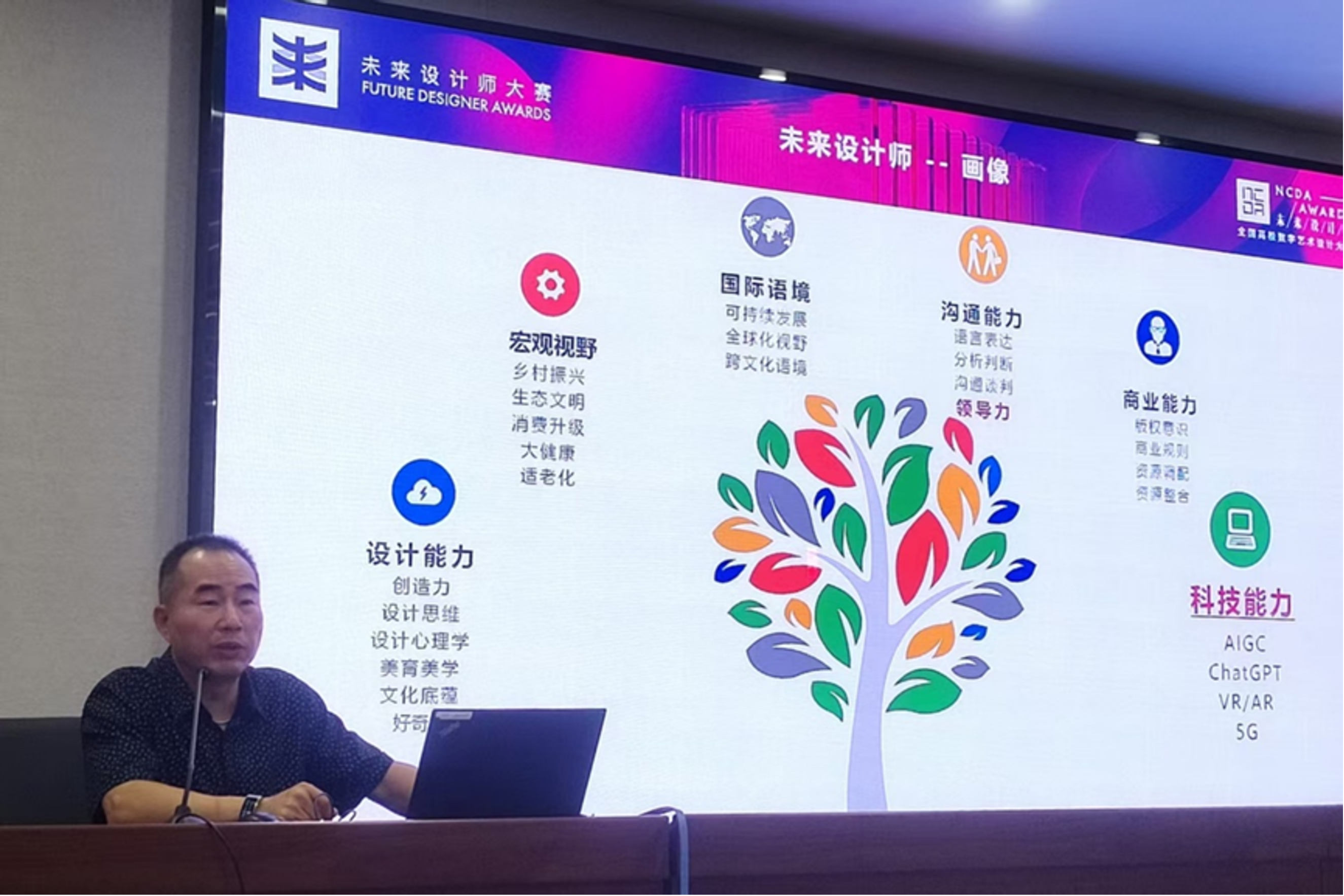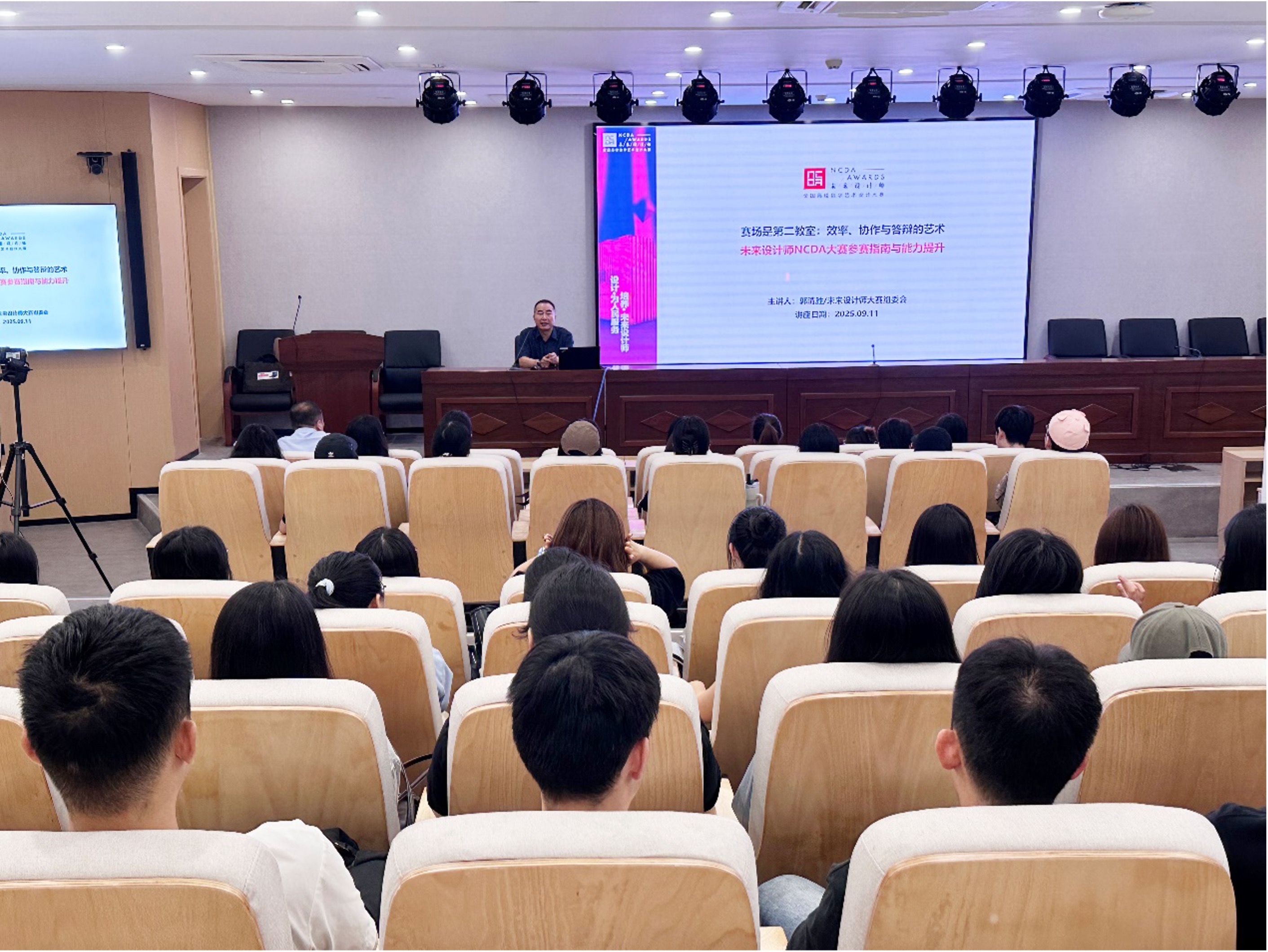 最后,郭老师强调“赛教融合”,鼓励学生拥抱AIGC等新技术,提升设计表达与团队协作力,并寄语同学们积极参赛,拓展视野,提升实践能力,讲好属于自己的设计故事。