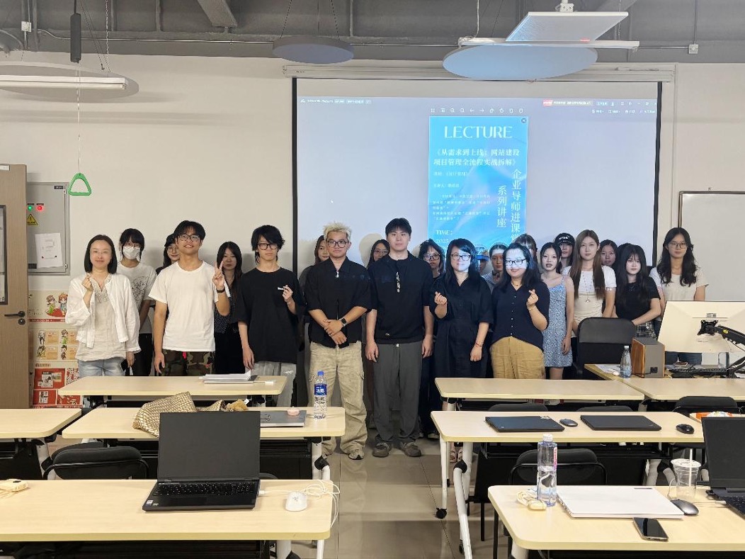 9月8日下午15:00,bw必威西汉姆联官网首页产教楼909教室举办了“企业专家进课堂”专题讲座。本次讲座围绕《从需求到上线:网站建设项目管理全流程实战拆解》展开。岚腾图文设计咨询(上海)有限公司欧美区客户经理耿佳君受邀担任主讲嘉宾。本次讲座由数字媒体艺术系常务副系主任咸妍老师主持,聂莎老师及相关师生参加了《设计管理》课堂讲座。