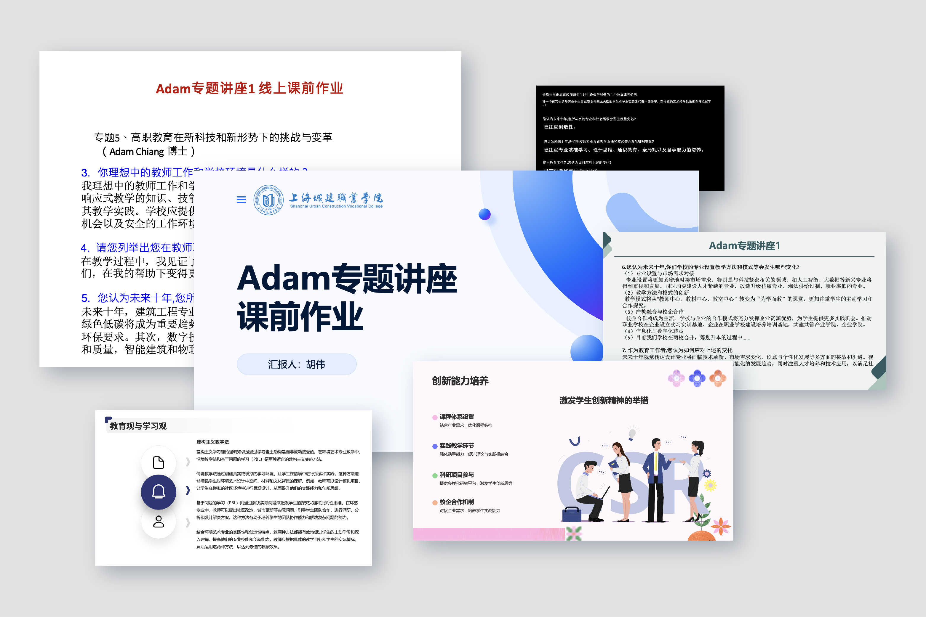 Adam Chiang教授介绍了海外高职教育概况、新加坡高职教育学生培养目标与蓝图、课程教学建设的科学运行与管理、特色化教学案例分析、AI时代下的产·教·学融合创新等内容。
